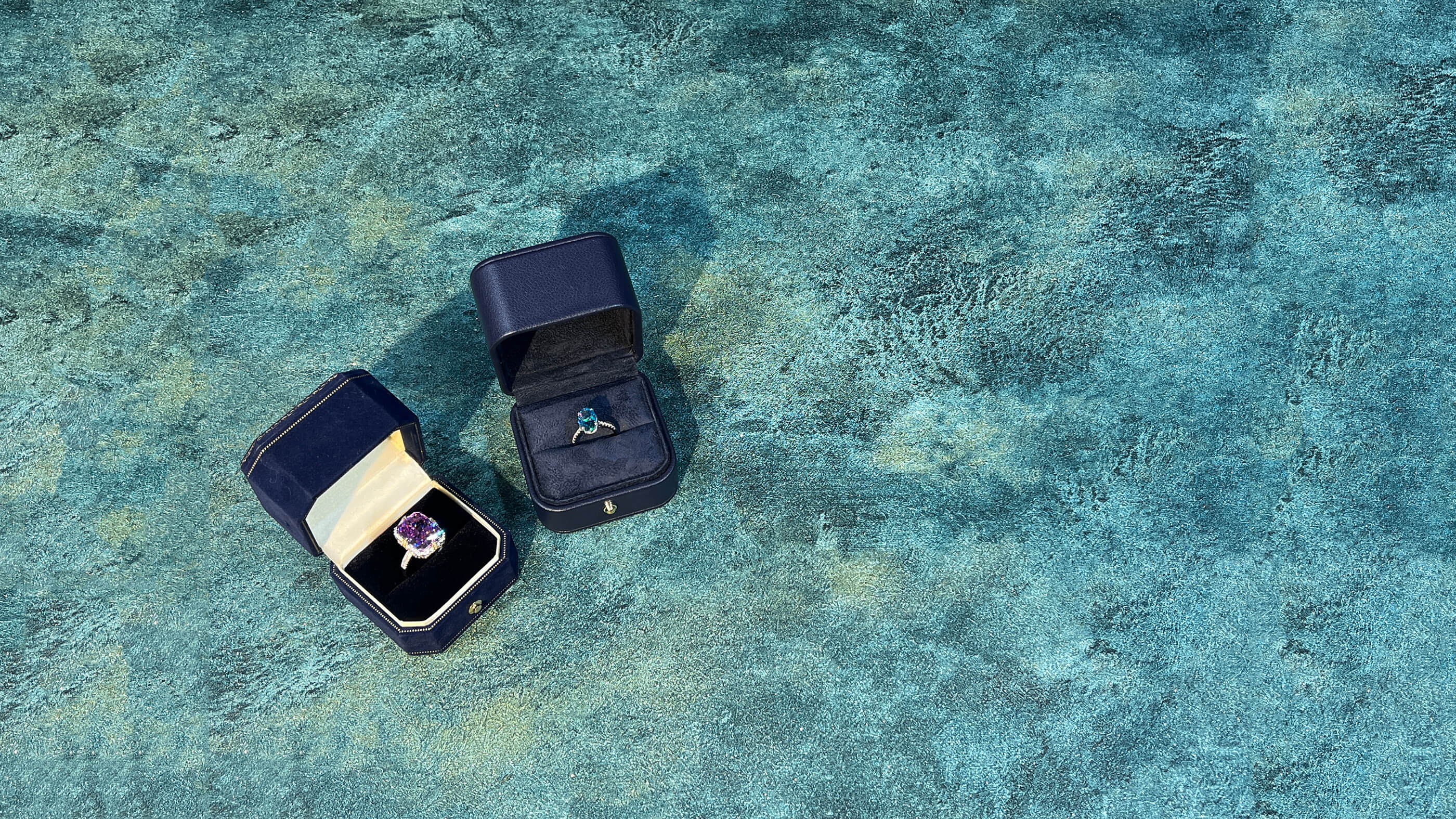 3 CT. 8*12mm Blue Zircon Oval Crushed Ice Cut Faceting Sterling Pavé Set Silver Ring