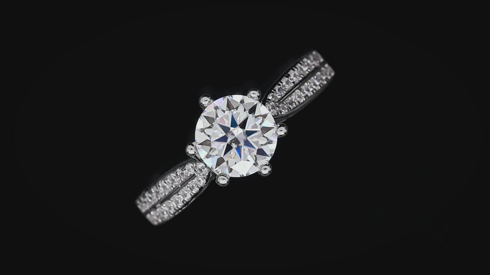 1 CT. Round Cut Moissanite Double Row Tapered Pavé Six Prongs Engagement Ring